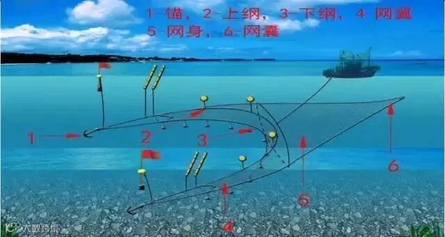 流网作业是将网垂直展开立于水中,长度通常超过1海里,渔船和渔网随风流漂移。