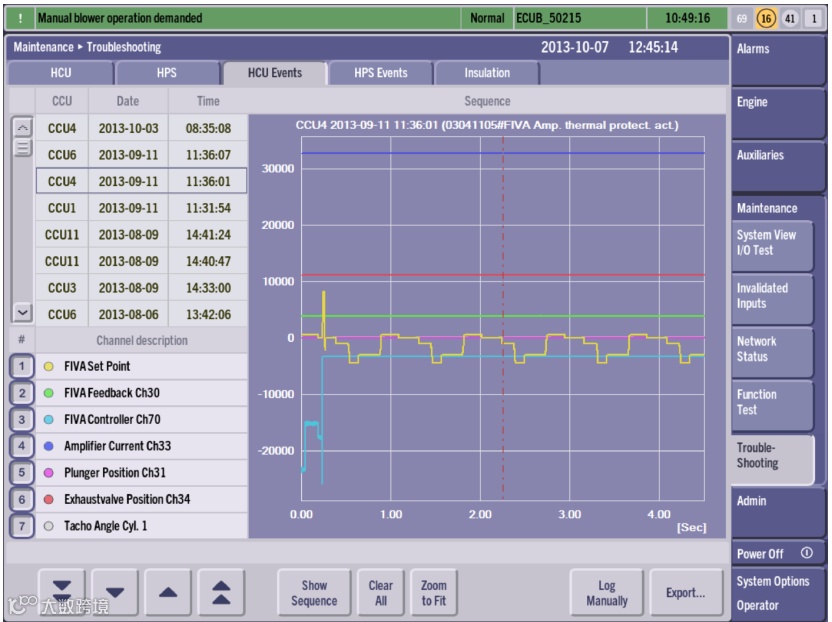 进行观察分析,HCU EVENTS是解决电喷机故障的葵花宝典似的存在,也是我在OCEAN PRIDE和各种案例学习的最大体会,当然MOP报警栏内显示出的报警原因也有很大帮助。