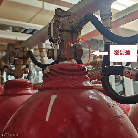 对CO2管路进行吹通之后,根据首先断开打开107瓶CO2瓶头阀与气管的连接,然后瓶头阀都给拧上密封盖(如图所示),再手动打开瓶头阀(我轮为气动杠杆式),检查是否漏气,确认无误后开始模拟释放试验。