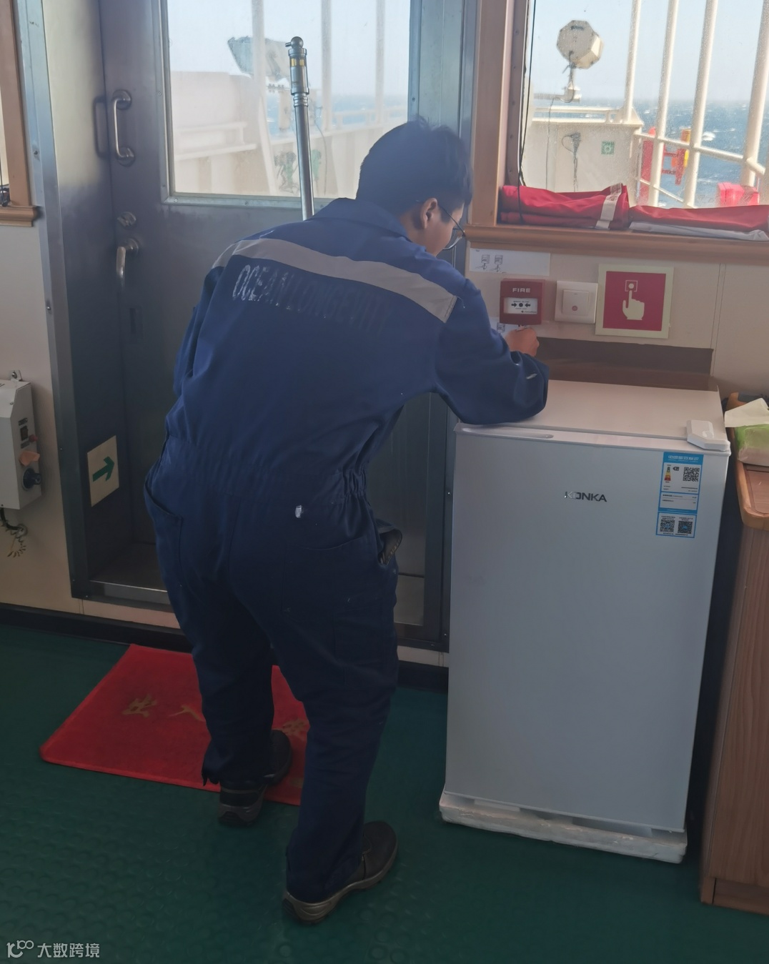 此次释放试验由二副在消防站进行遥控释放,年检人员在CO2间进行高频指挥(在船释放由船长指挥),我和三副在旁边协助。所有人员撤离机舱(防止误操作)。