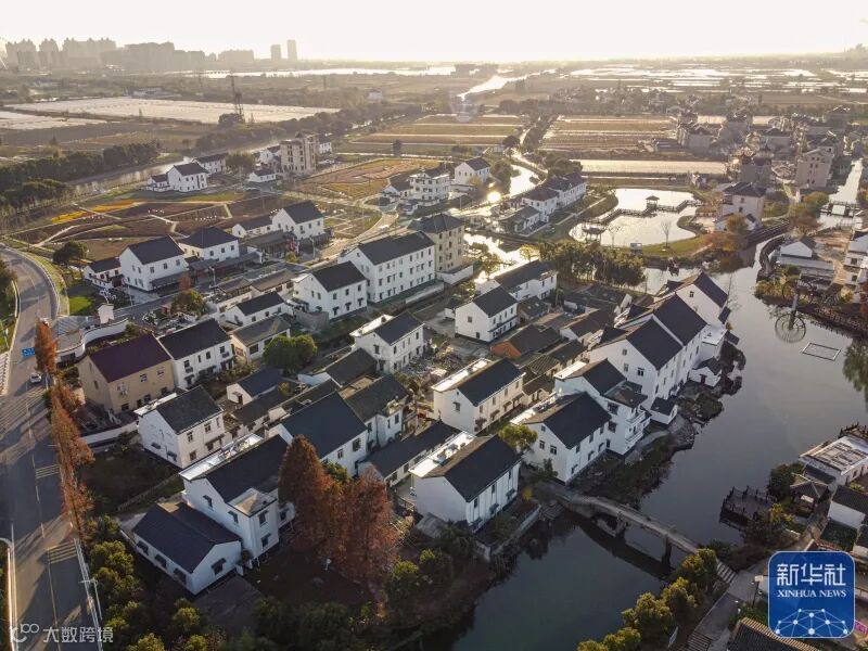 浙江省嘉兴市秀洲区油车港镇胜丰村景色(2020年12月15日摄,无人机照片)。 新华社记者江汉摄