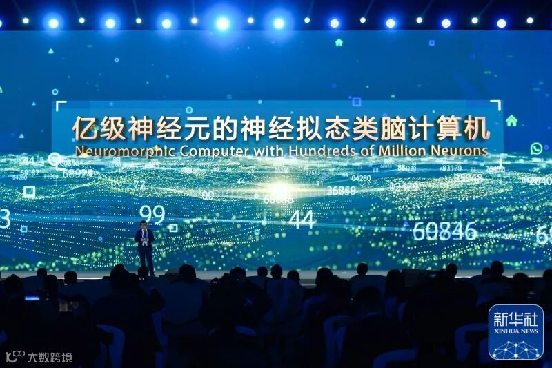 浙江大学、之江实验室代表在“世界互联网领先科技成果发布”活动上介绍“亿级神经元的神经拟态类脑计算机”(2020年11月23日摄)。新华社记者黄宗治摄