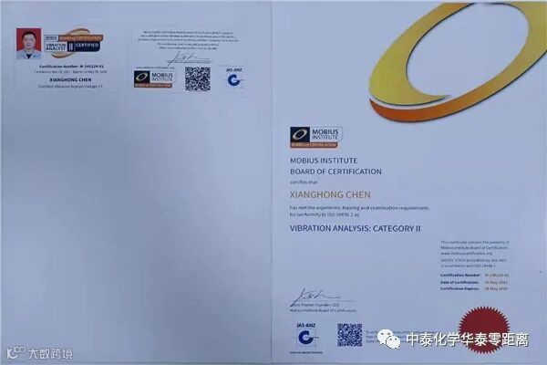 喜报:华泰公司检修车间陈祥洪取得中泰集团首位”国际振动分析师“证书