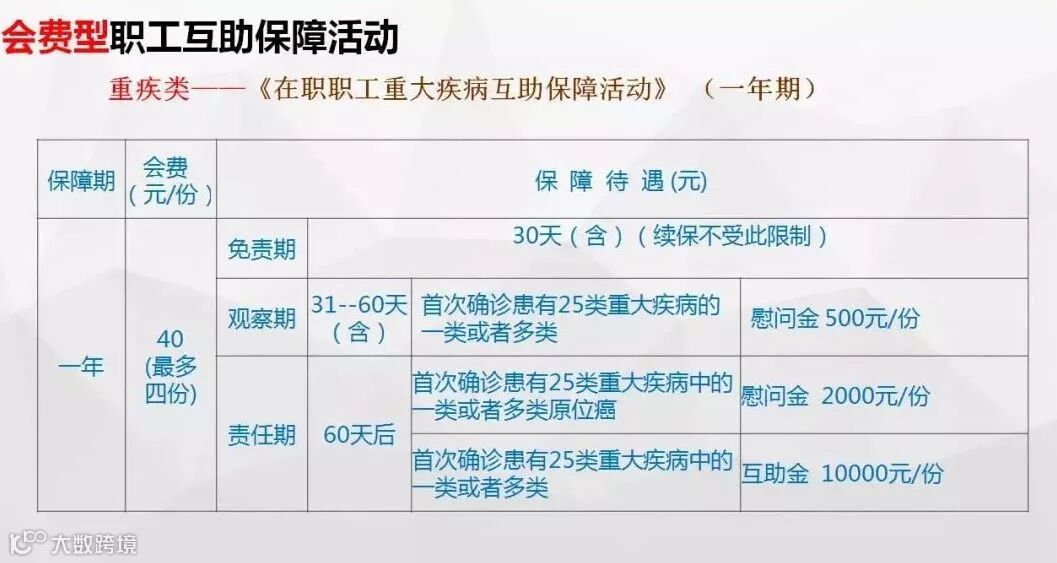 本活动会费标准为每人40元,保障期为两年,期满后,无论会员是否已享受互助金待遇,所交纳会费不再返还。