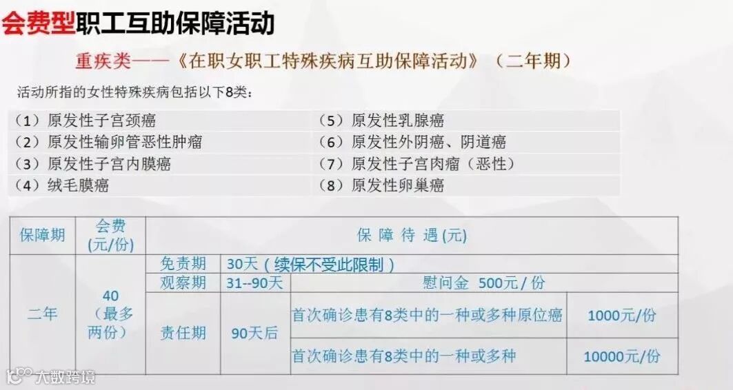 3.在本活动生效90日(不含)后,会员首次确诊患有8类女职工特殊疾病的一类或多类原位癌时,可以一次性领取慰问金1000元,本期女职工特殊疾病保障待遇终止;