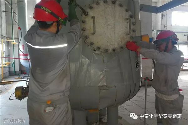 夏末仍旧骄阳似火,厂房转一圈就会汗流浃背,酷似蒸笼。在这样的天气下,烧碱车间A单元的检修如期进行着。为了能高效的完成各项任务,大家就像是上了发条的机器,两步并做一步走,行色匆匆,从开票、培训、交底、试吊、到作业工器具检查等一系列准备工作,忙而有序。此次检修的重点是更换三效加热室,其次是检查一效、二效加热室的丝网是否损坏、板换消漏、中压蒸汽阀门消漏以及A单元微机操作系统的更新。