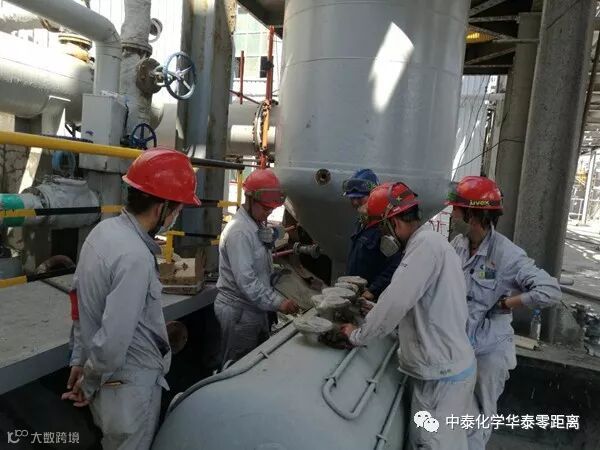 八月的天气,在乌鲁木齐也是骄阳难耐。当人们结束了一天的工作,在家里休闲纳凉时,在华泰公司氯碱厂的各个检修区域里,却呈现出一片繁忙的景象,各族干部员工用自己的辛勤与汗水谱写着一幅幅高温作业、坚守岗位、奋力工作的检修场景……在氯乙烯车间合成区,检修人员在硕大的换热设备旁,搭建站台拆卸着各种管道、附件,虽然早已汗流浃背,却丝毫也没有阻拦工作员们的热情。