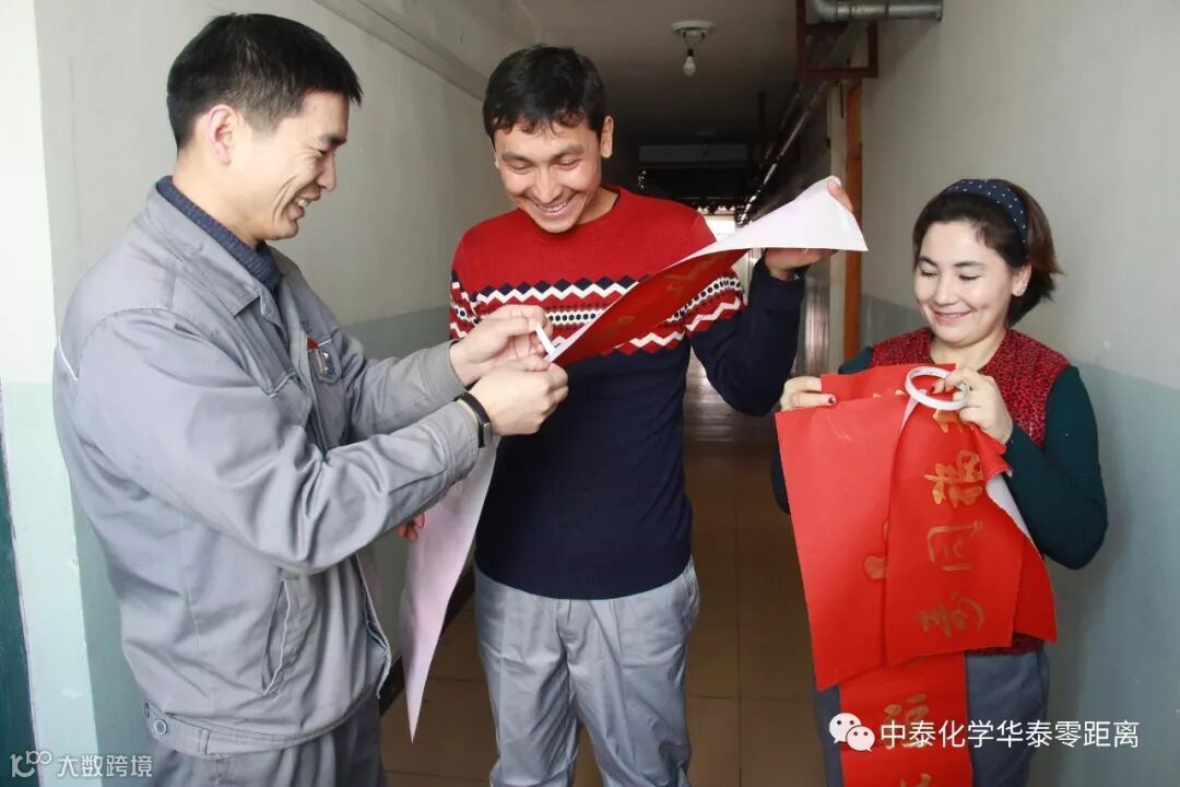 正值中华民族的传统佳节—春节来临之际,在华泰公司这个大家庭中还有来自喀什、和田富余劳动力转移安置就业人员,他们依然坚守在岗位上。春节前夕,华泰公司副主任工以上的管理人员,带着关心与祝福,再一次来到结对亲戚身边。聊生活,谈工作,说变化,共同祝愿新的一年平安幸福!
