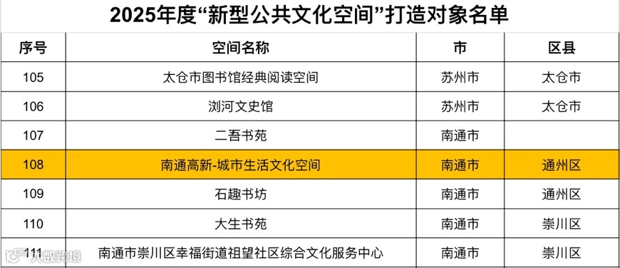 2月24日,江苏省文化和旅游厅发布关于2025年度“新型公共文化空间”打造对象名单的公示。