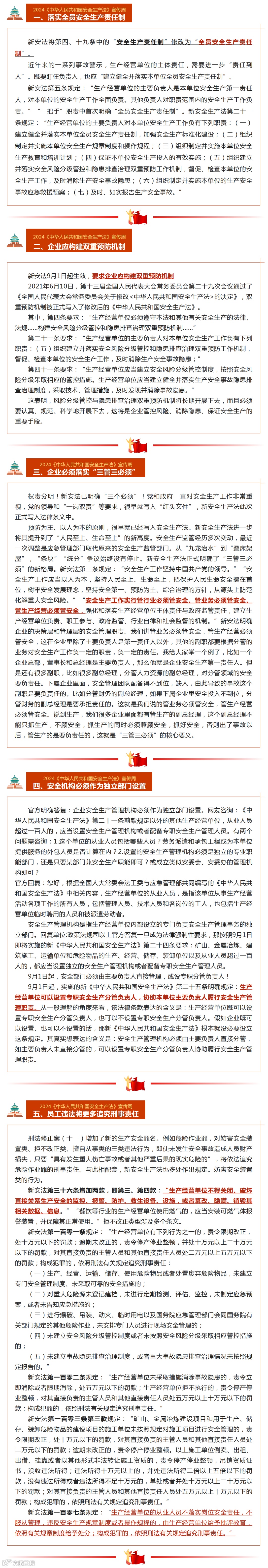 《中华人民共和国安全生产法》的大幅度修改,多项制度的实施,加大处罚力度,进一步压实监管部门和生产经营单位的责任,为消除安全隐患,有效防范安全生产中事故的发生提供了保障。符合新发展阶段对安全生产提出的更高要求,符合党和国家及人民对安全生产的期待。