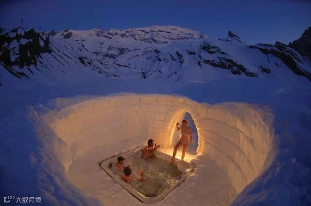 (马特洪峰*户外按摩池)马特洪峰位于阿尔卑斯山峰之一,位于瑞士与意大利之间的边境。在这里按摩真是冰火两重天哦。