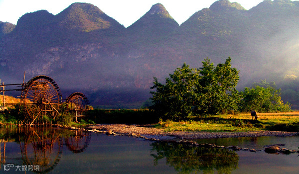 除了坝美,广南县的另一个景点——八宝,也美得令人窒息。八宝被誉为“高原小桂林”,有着桂林一样的喀斯特峰林地貌,温婉柔美。坐上竹筏,顺着八宝河一路慢慢飘向下游,喀斯特小山峰、万亩贡米稻田、13个壮族村落,依次排开,宛如仙境。