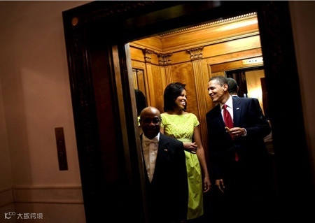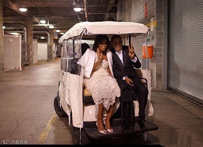 很明显,奥巴马和第一夫人刚参加完一场盛会回到停车场。