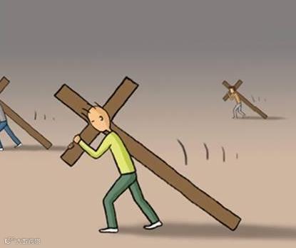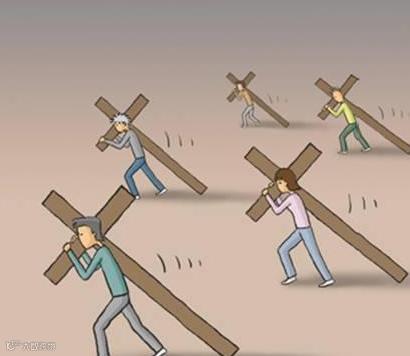 每个人都背负着一个沉重的十字架,在缓慢而艰难地前行!