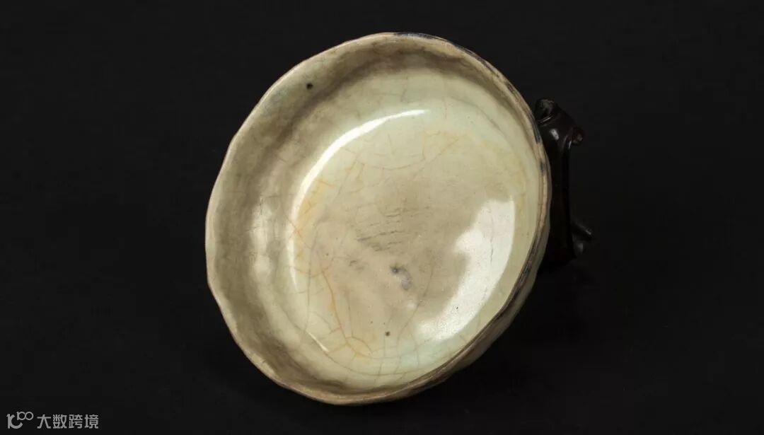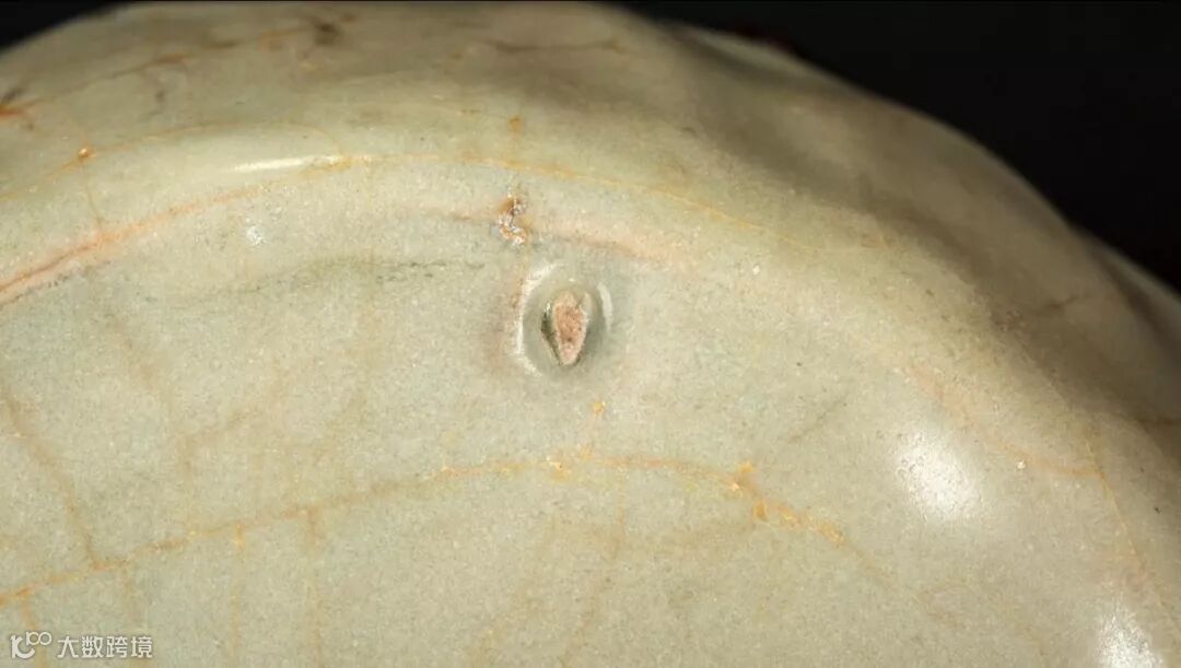 现在窑址呢就是说在老虎洞这个窑口里发现了哥窑的其实就是哥哥窑,但是他跟传世的哥窑从开片上和质地胎上还是有很大区别的,很多人都在注解这个哥窑。但是他还是很神秘的。这件哥窑好在哪呢就是晕光好,开片美。包括他的修足,包括他后面底足上还有一个款实,那款查出来应该是慎。