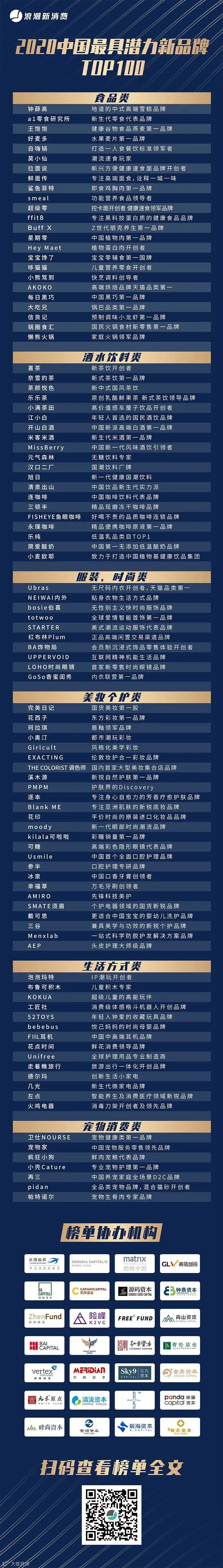 2020年中国最具潜力新消费品牌TOP100