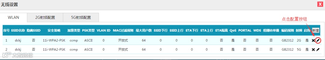 点击“无线设置”,选择需要查看密码的SSID,点击配置按钮。