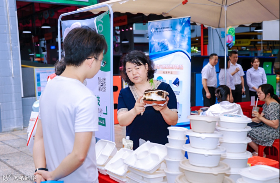 垚能的同事在为市民展示餐盒的降解过程