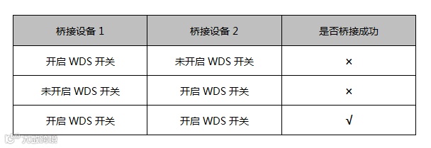 A:查看桥接双方设备配置页面是否都开启WDS开关,只有桥接双方设备都开启WDS开关才可桥接成功。