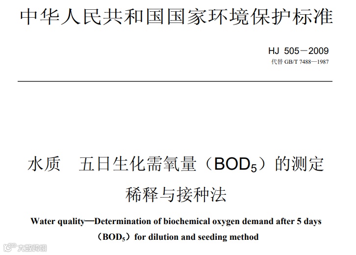 检测方法:HJ 505-2009《水质 五日生化需氧量(BOD5)的测定稀释与接种法》
