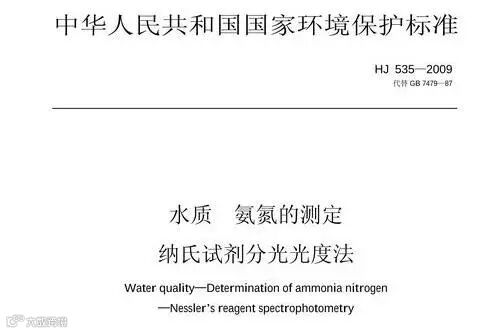 检测方法:HJ 535-2009 《水质 氨氮的测定纳氏试剂分光光度法》