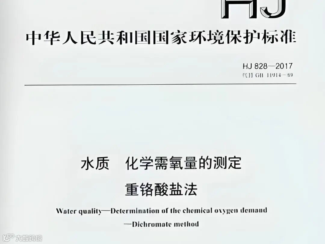 检测方法:HJ 828-2017 《水质 化学需氧量的测定重铬酸盐法》