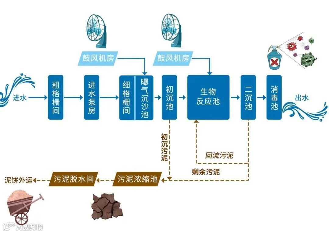 处理工艺:通过格栅、沉砂池、沉淀池、滤池等物理单元操作逐级去除。