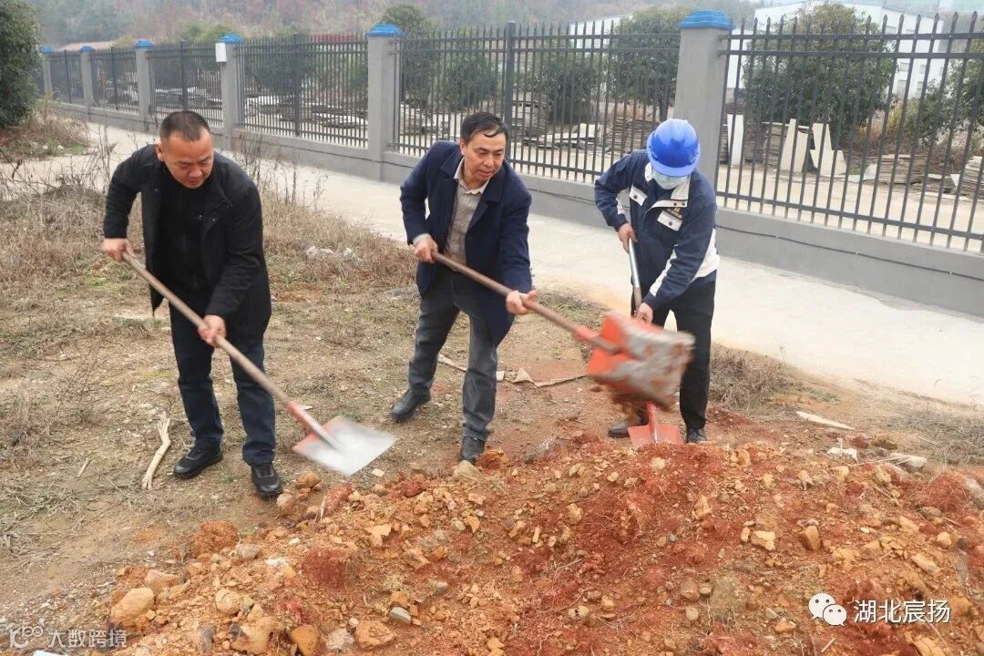 2023年2月18日上午9时18分,云锦绵延、微风徐徐,湖北宇宸新材料科技有限公司(以下简称“湖北宇宸”)举行开工动土仪式,湖北宇宸执行董事毛俊军,监事汪会平、谭鋆以及华劲铝业宋总等共同参加了开工动土仪式。