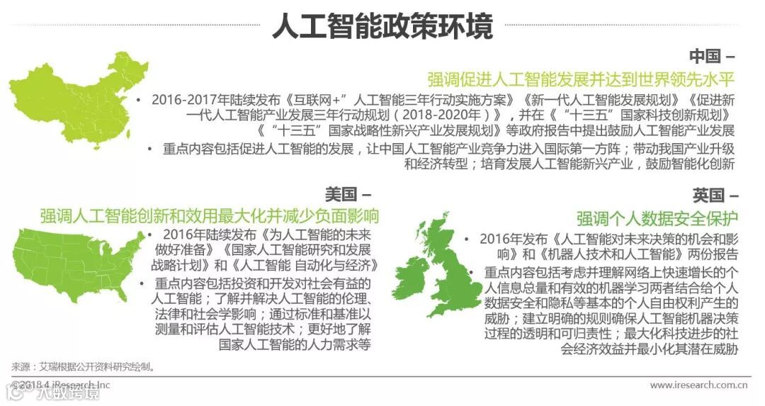 伴随政策支持的逐步深入,中国政府将有力推动新一代人工智能技术的产业化与集成应用,促进新一代人工智能产业发展,推动制造强国和网络强国建设,助力实体经济转型升级,构筑我国人工智能发展的先发优势。此外,相比美国和英国,中国对人工智能的支持力度虽更大,但较少关注人工智能的道德伦理问题、是否在开发对社会切实有益的人工智能以及应当最小化技术进步所带来的威胁问题。