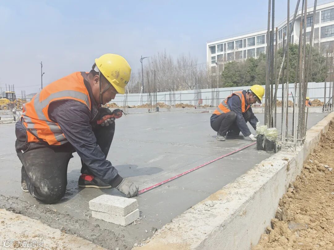 项目现场,施工人员正精准完成水泥地面弹线定位,为墙体砌筑做好前期准备。一道道墨线笔直延伸,工序衔接紧凑有序,现场作业规范高效,为后续主体施工筑牢坚实基础。