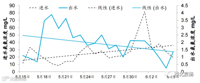 某工业园区污水处理厂因工艺设计缺陷,缺氧停留时间短,出水氨氮超标,现场加大碳源投量及其他药剂仍未能解决问题。针对此问题,我司采用HT01菌种方案,加药前氨氮浓度为15-40mg/L,加药后降至1.3-2.5mg/L,脱氨氮效果显著。
