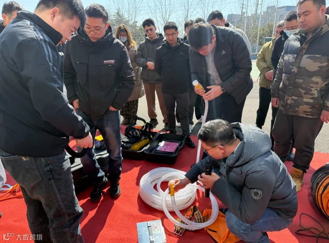 实操演练环节则重点围绕有限空间作业中常用安全设备的使用展开,详细演示了有毒气体检测仪、五点式安全带、长管呼吸机、正压式呼吸器、手提式有限空间排风机及救援型三角架等设备正确的安装、使用方法及注意事项。