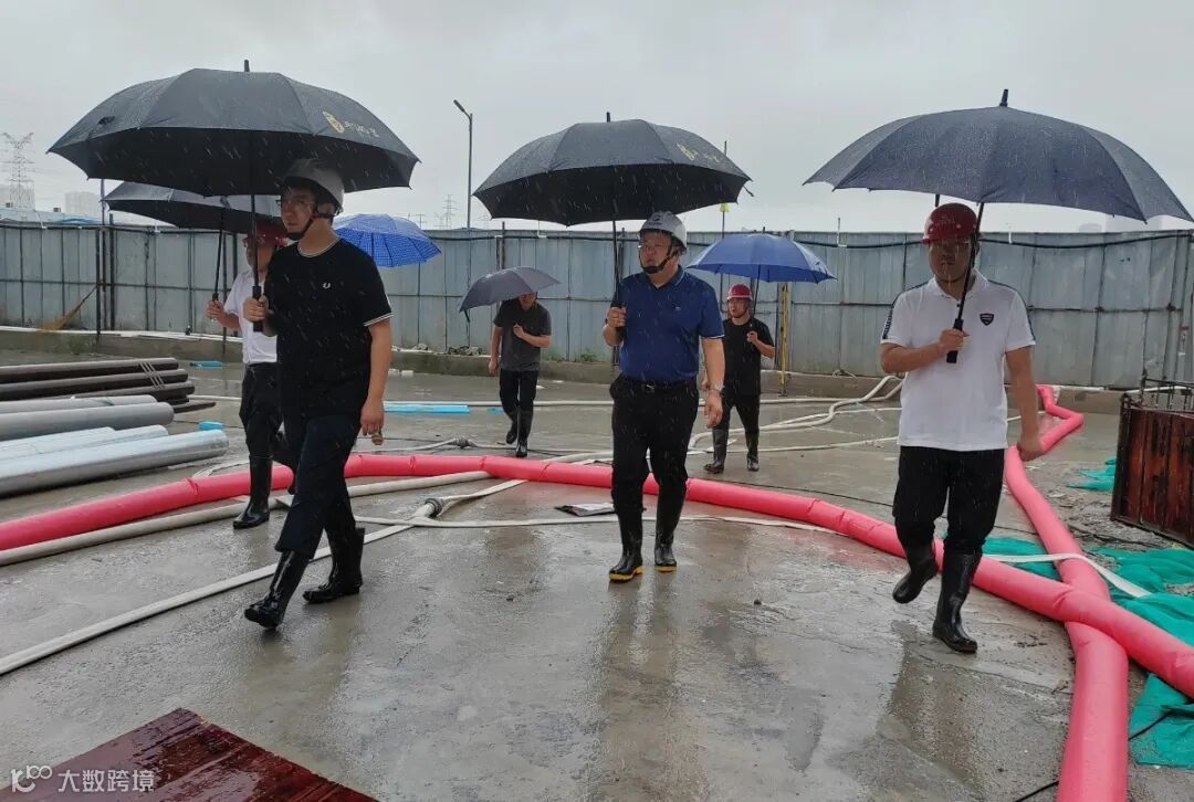 高科公司立即启动应急响应机制,第一时间召开防汛工作部署会,成立高科公司防汛工作领导小组,收集各在建项目信息报送情况,加强24小时应急值守,备足应急人员、设备、物资严阵以待。暴雨过后,高科公司主要负责人带队深入施工一线,排查安全隐患,检查成品保护、抽排水、隐患修复、工人生活区板房加固等情况,要求对工程存在渗水、成品保护等重点事项细排查、再整改、不留死角。并与各项目负责人深入交流,详细了解建设进度、工程质量、施工安全等情况,叮嘱现场抽排水作业人员两人同行,互帮互助。