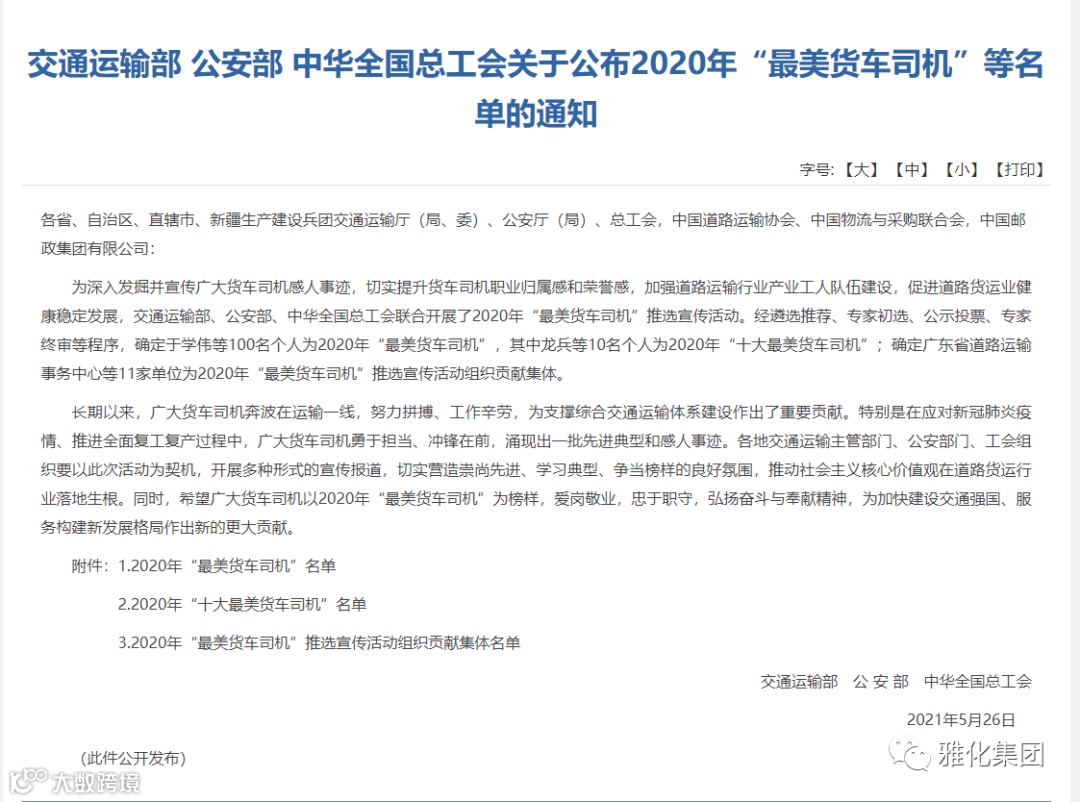 李克强总理曾说:“货运司机联系着交通的大动脉,在维持血脉的畅通中起到了关键的作用。”关键时刻挺身而出,默默奉献不求回报。于家人而言,他们是值得依靠的“擎天柱”,于雅化而言,他们又是值得骄傲的“后勤兵”。“最美货车司机”谢斌在平凡岗位上用英勇事迹书写着最美故事,以他为代表的雅化运输者们平凡却不可或缺,他们勇于担当、冲锋在前,以自己的每一公里为雅化贡献出了一份力量!