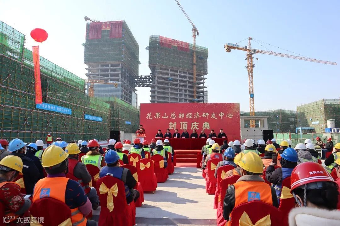 1月25日上午10:58分,花果山总部经济研发中心项目主体封顶仪式在项目现场隆重举行。新海连集团党委书记、董事长刘坚出席封顶仪式并讲话,中建三局华东公司总经理闫登飞、科力监理公司总经理吉文元、新海连集团相关班子领导、高科公司负责人及项目相关人员出席仪式。
