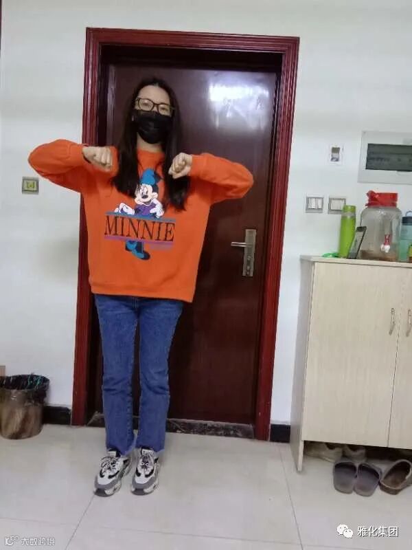 老师以钉钉直播的形式进行舞蹈《武汉加油 中国加油》的教学,员工们进行线上学习,向所有奋战在抗疫战线工作者们致敬!