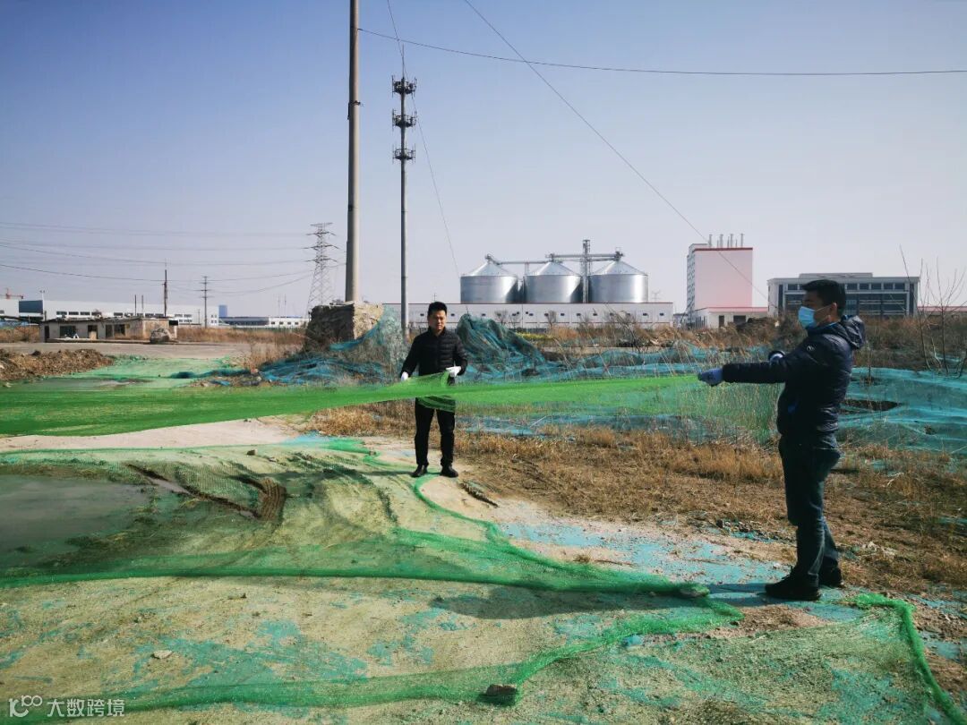 为了积极响应落实区大气污染防治工作要求,有效抑制扬尘,减少环境污染,打造“开发区蓝”,打赢蓝天保卫战,近日,市政公司全体在岗干部职工深入虎山矿区和一带一路物流园现场,对裸露地块进行覆盖,大面积铺设防尘网。