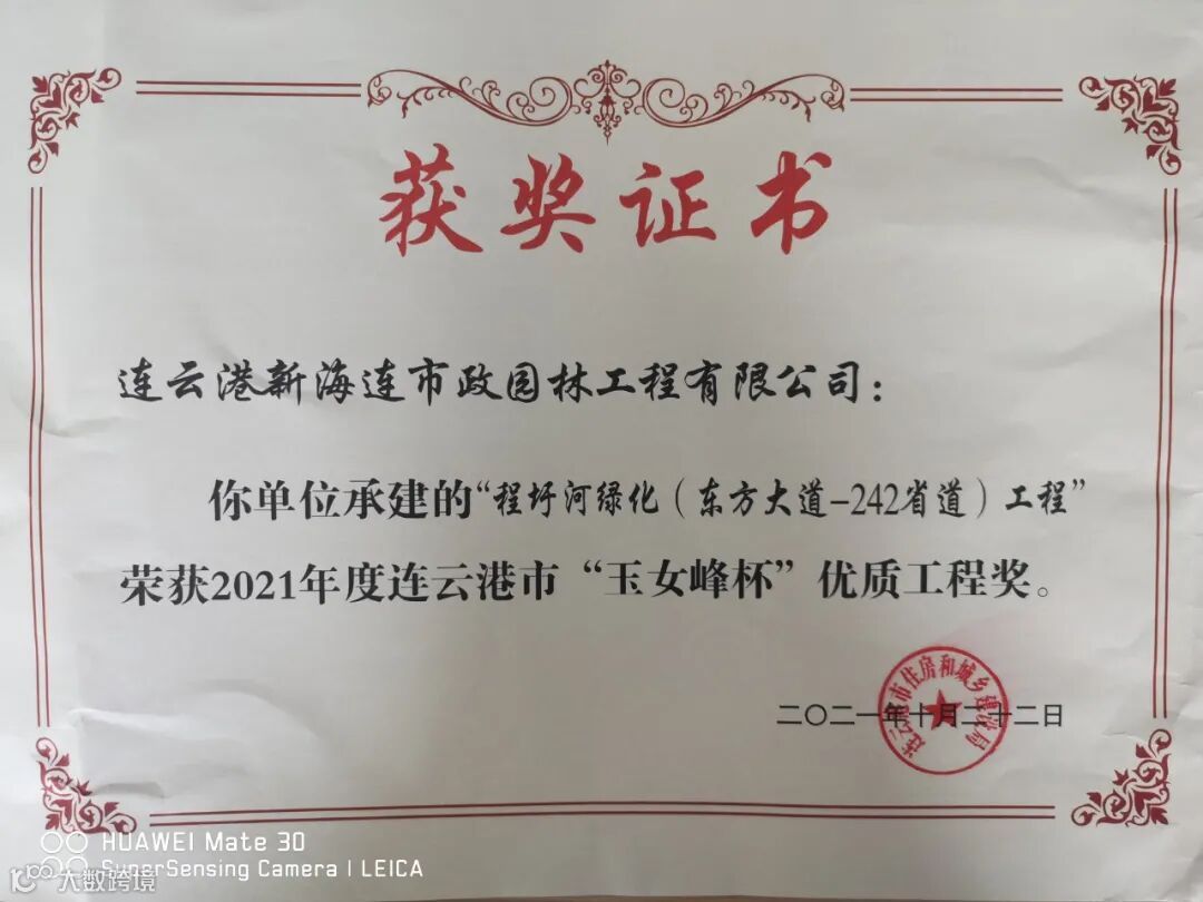 荣获2021年度连云港市“玉女峰杯”优质工程奖