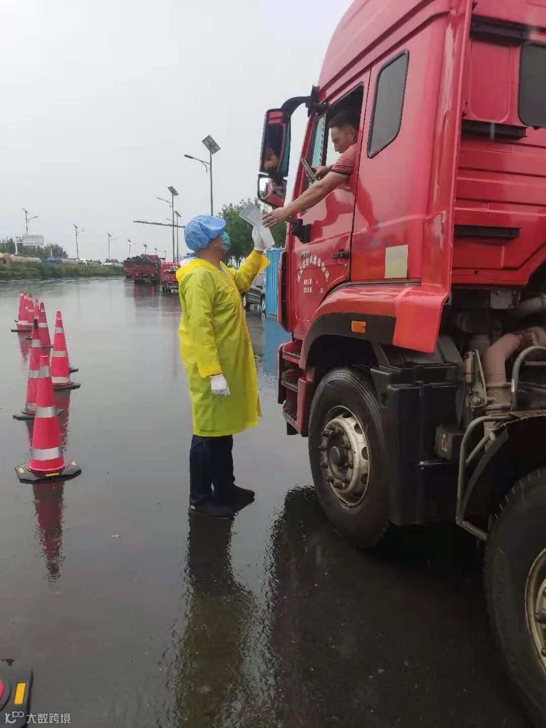 对来往车辆进行防疫检查