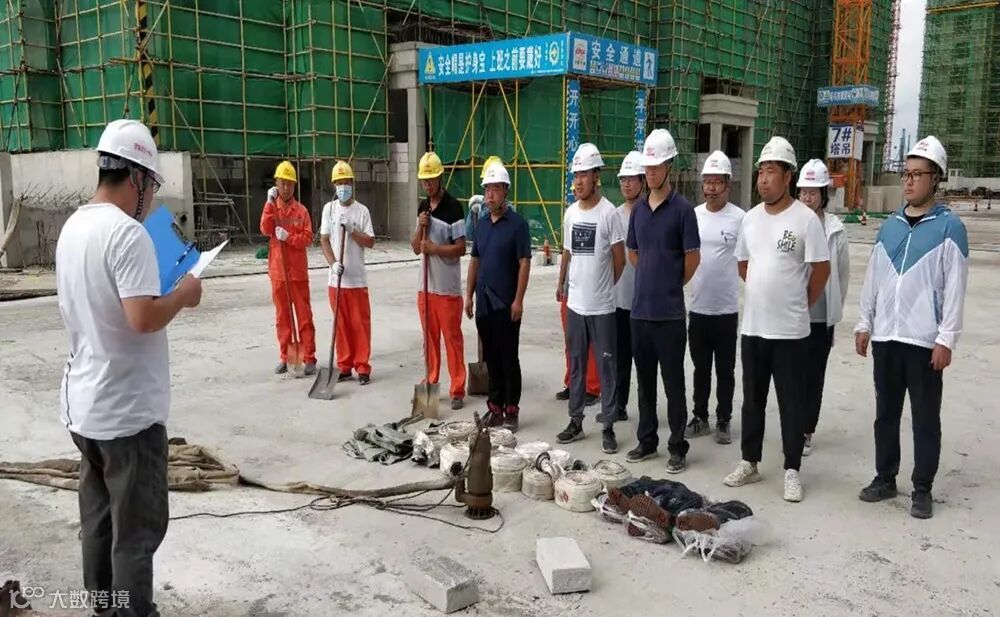 本次演练内容包括填装沙袋修筑临时堤防、地下室雨水倒灌积水排除两个项目。演练开始前,两个项目部提前准备了防汛物资和抢险设备;演练中,各单位人员分工有序、职责明确,紧张、有序的开展抢险救援,最终成功封堵雨水倒灌口,并将地下室基坑内积水及时排除。