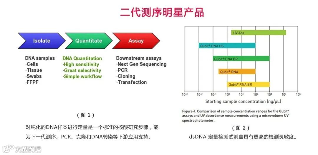 广州赛百纯生物科技有限公司最新推出核酸定量检测试剂盒。试剂盒利用Picogreen DNA染料能够特异性结合双链DNA,而不与蛋白质、RNA、盐离子结合的原理,通过激发光照射,Qubit检测仪收集发射光,特异的分析样品中双链DNA的实际含量,能够排除样品中蛋白质、RNA、盐离子等物质的干扰,从而对双链DNA进行精准的定量。
