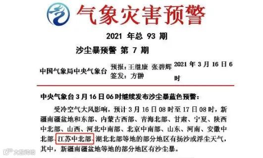 沙尘暴蓝色预警