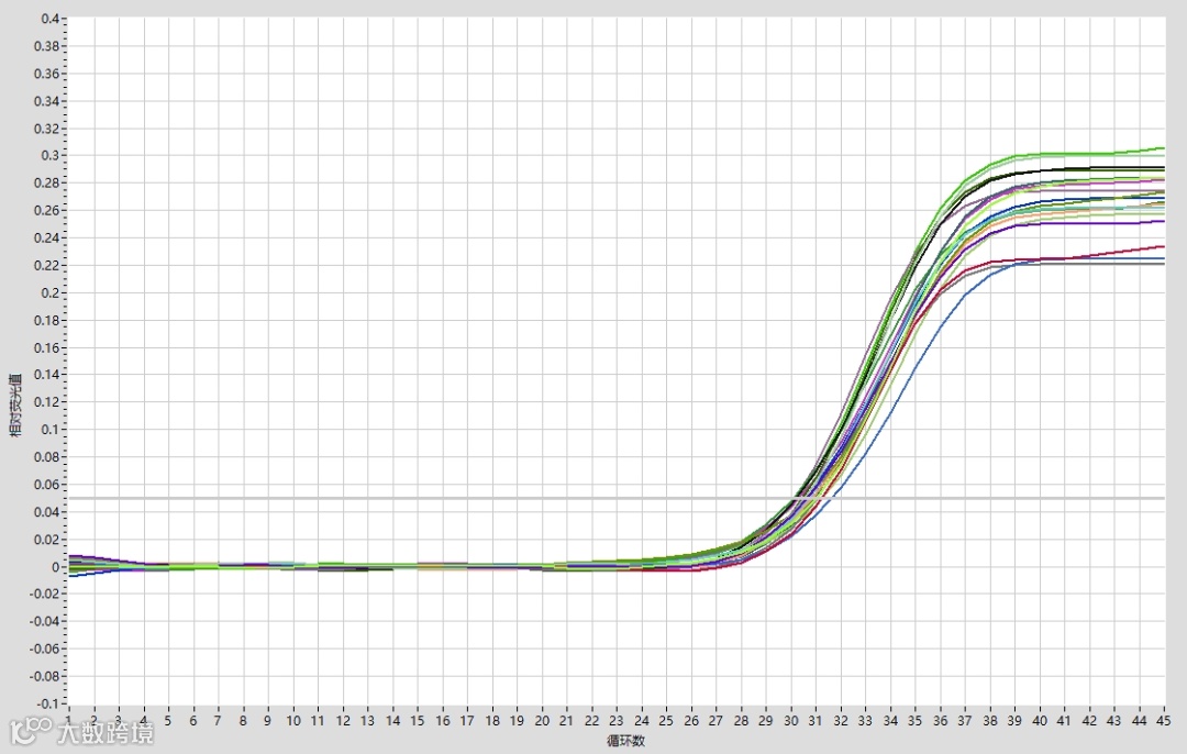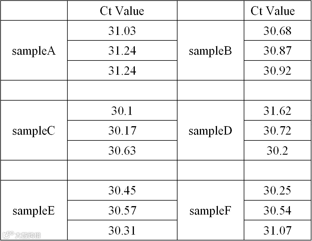 图2:得到的DNA,使用内参基因β-globin 进行荧光定量检测,并统计其Ct值 见表2: