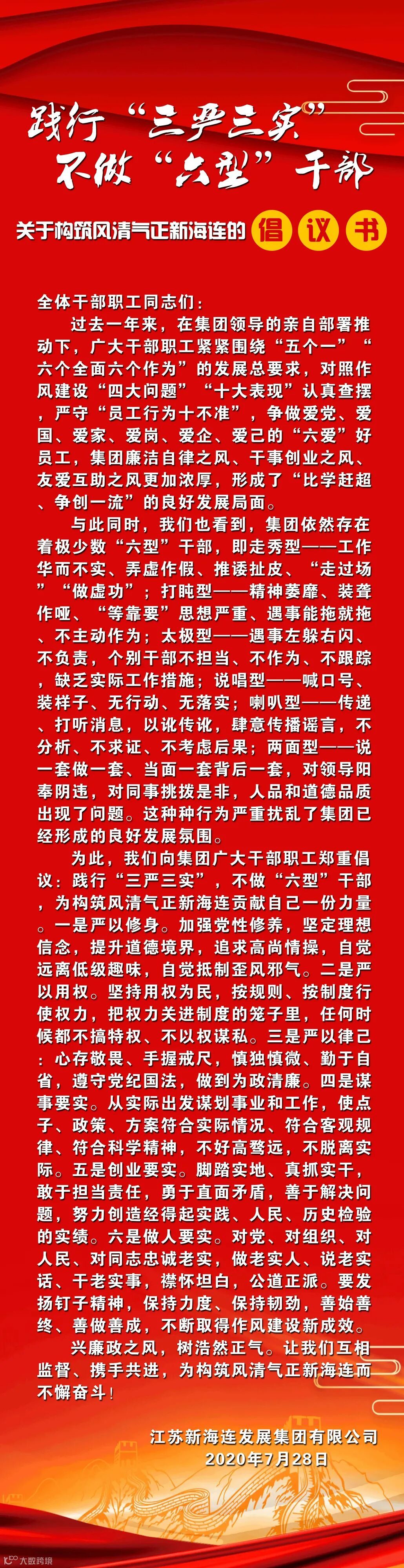 【重要】践行“三严三实”不做“六型”干部——关于构筑风清气正新海连的倡议书