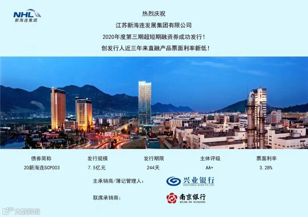 【金融动态】新海连集团成功发行2020年第三期超短期融资券