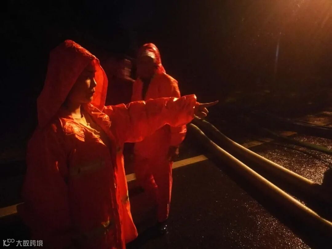踩深水、踏泥泞、顶暴雨、抗黑夜......这一切丝毫挡不住新海连一线人战暴雨保运转的步伐。