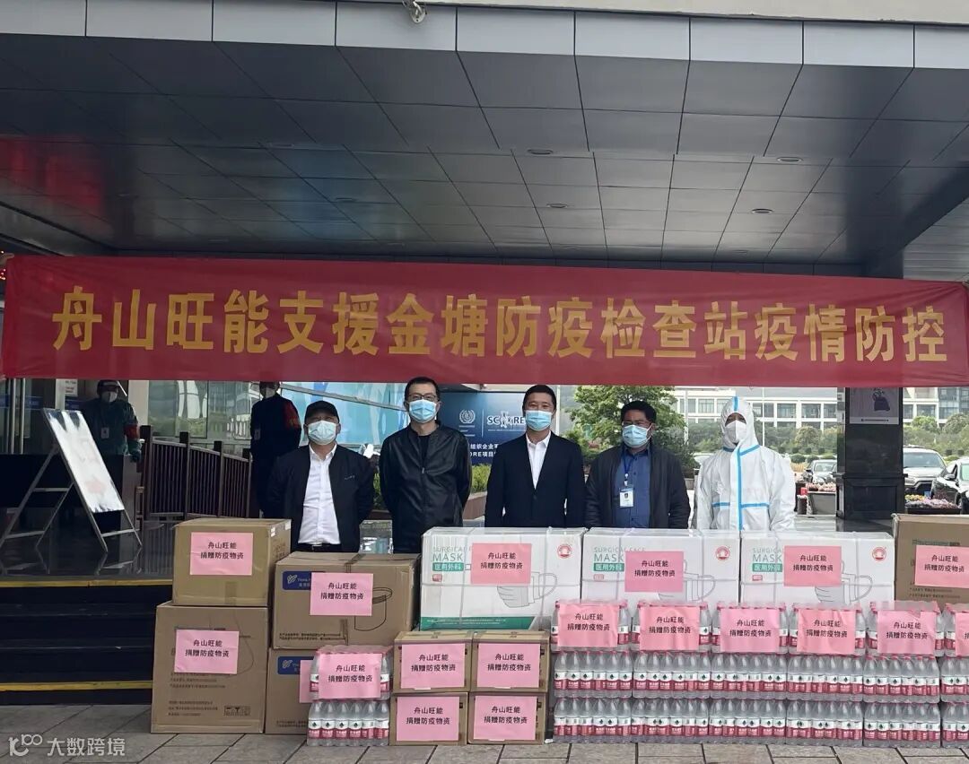 4月19日下午,舟山旺能负责人莫国栋带领公司领导层向金塘防疫检查站捐赠了4箱医用手套,2箱隔离防护服,2箱面罩,3万只医用口罩,20箱矿泉水等共计36箱防疫物资,慰问奋战在疫情防控一线的工作人员。定海区交通运输局副局长薛绍棋代表检查站接收了捐赠的物资。