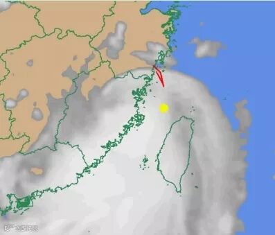 这是一张CN-1型无人机向台风进发的路径图。黄色为台风中心眼,红色为飞行轨迹。