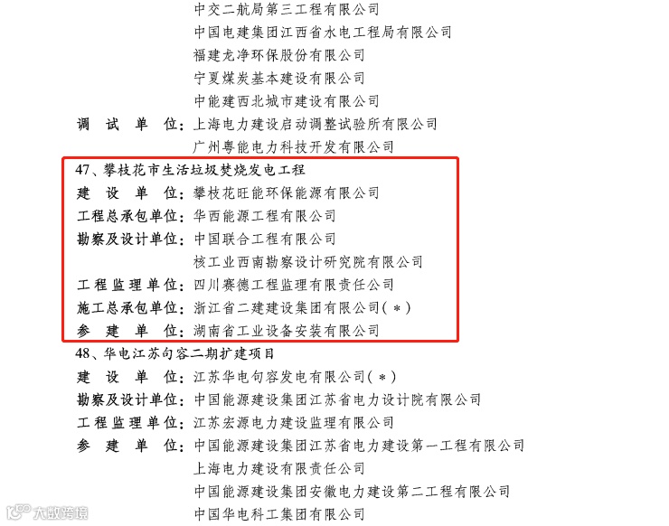 近日,中国施工企业管理协会文件(中施企协字〔2021 ] 107号)发布了《关于表彰2020-2021年度国家优质工程奖的决定》,公布了2020-2021年度国家优质工程奖获奖名单,共有43项优质工程获得国家优质工程奖“金奖”,687项工程优质工程获得国家优质工程奖。其中,攀枝花市生活垃圾焚烧发电工程获国家优质工程奖。