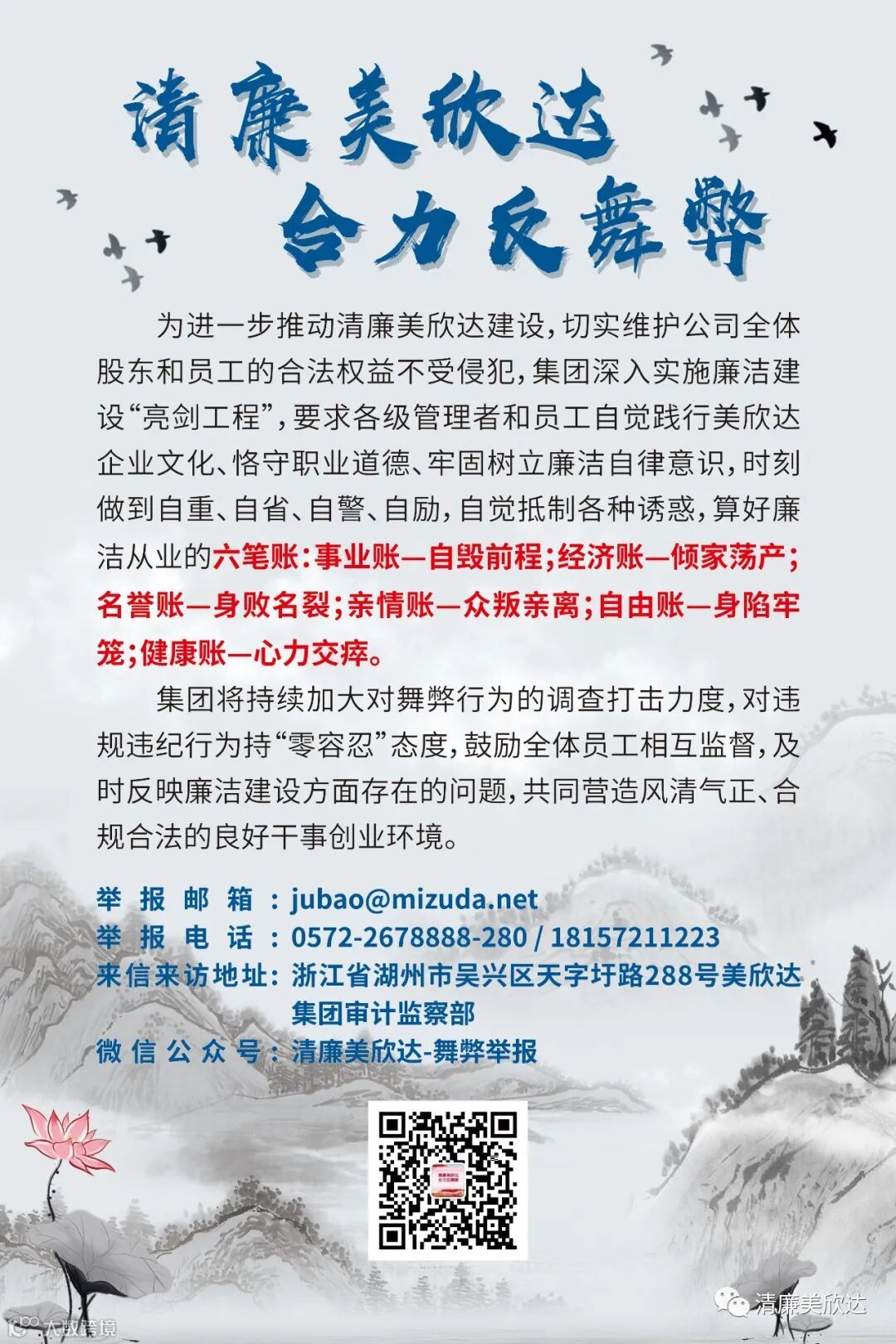 8月24日,发布了《美欣达集团作风廉洁建设八项规定》,对“底线”、“红线”进行再明确、再细化。